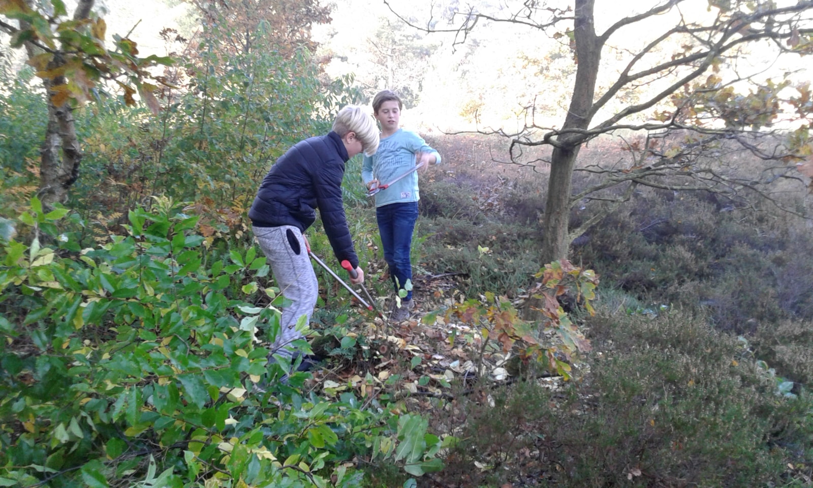Afgelopen 31 oktober zijn we voor de 2e keer naar ons stukje duin geweest. Samen met boswachter Frans hebben we de vogelkers uitgedund, kleine dennen omgezaagd en de takken afgevoerd naar de verzamelplek. Er is ongelofelijk hard gewerkt, terwijl de zon ongenadig scheen. De jassen gingen uit, de mouwen werden opgestroopt en we hebben ons stukje duin heel open gemaakt. De boswachter prees ons voor ons harde werken. In januari gaan we weer verder!