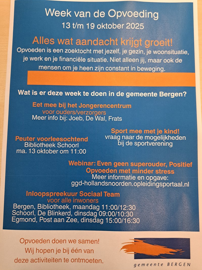 Graag informeren wij jullie over de Week van de Opvoeding die plaats vindt van 13 tot 19 oktober 2025. Als gemeente willen wij hier graag bij stilstaan samen met onze partners.